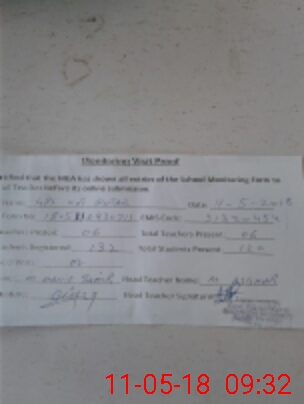| Attendance Register | Head Teacher | MEA with School | Visit Proof |