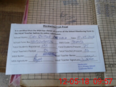 | Attendance Register | Head Teacher | MEA with School | Visit Proof |