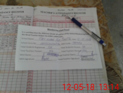 | Attendance Register | Head Teacher | MEA with School | Visit Proof |
