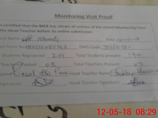 | Certified that this School was Inspected by the Undersigned MEA/DMO Today and the Information Stated Above is as Per Record. | |||||
