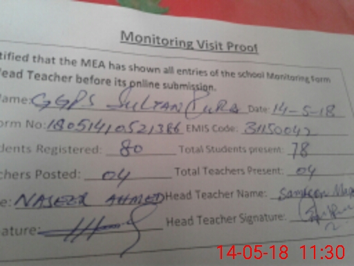 | EMIS Code: 31150042 | Name of School: GGPS SULTAN PURA | |||
