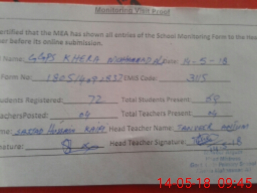 | EMIS Code: 31150262 | Name of School: GGPS KHERA MUHAMMAD ALI | |||