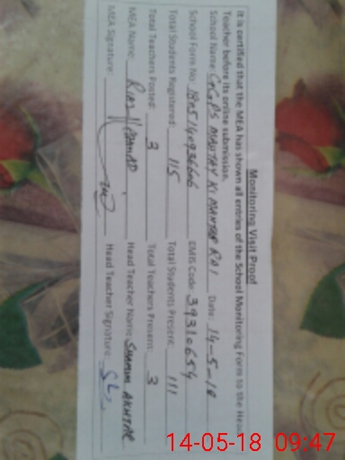 | Attendance Register | Head Teacher | MEA with School | Visit Proof |