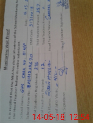 | Attendance Register | Head Teacher | MEA with School | Visit Proof |
