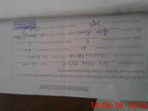 | Certified that this School was Inspected by the Undersigned MEA/DMO Today and the Information Stated Above is as Per Record. | |||||
