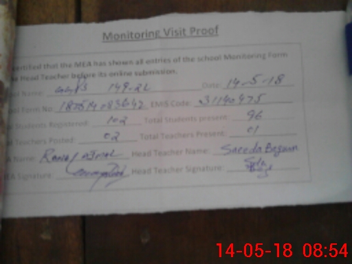 | Attendance Register | Head Teacher | MEA with School | Visit Proof |