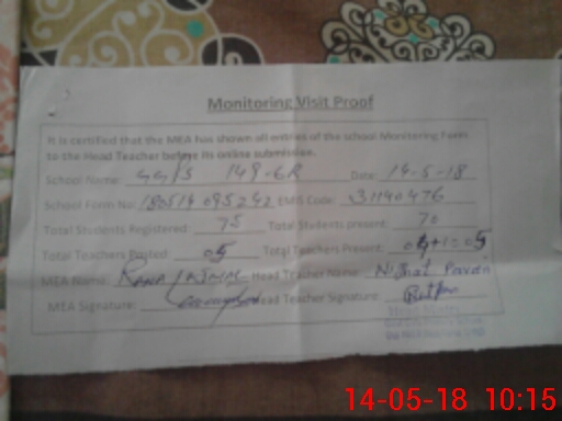 | Certified that this School was Inspected by the Undersigned MEA/DMO Today and the Information Stated Above is as Per Record. | |||||