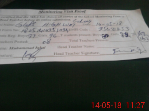 | Certified that this School was Inspected by the Undersigned MEA/DMO Today and the Information Stated Above is as Per Record. | |||||
