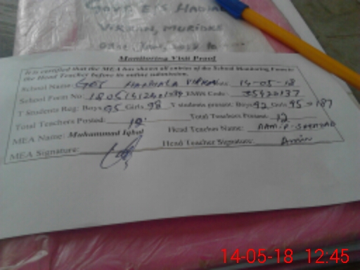 | Certified that this School was Inspected by the Undersigned MEA/DMO Today and the Information Stated Above is as Per Record. | |||||