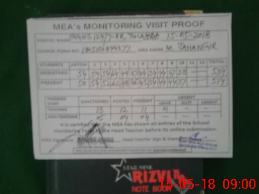 | Certified that this School was Inspected by the Undersigned MEA/DMO Today and the Information Stated Above is as Per Record. | |||||