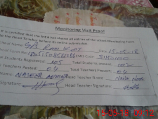 | EMIS Code: 31150100 | Name of School: GPS RAMKOT | |||