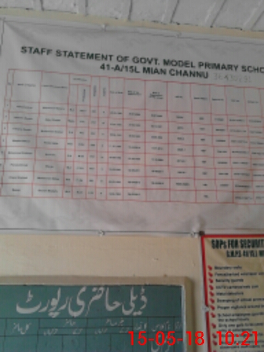 | EMIS Code: 36430291 | Name of School: GMPS 41-A/15-L, MIAN CHANNU | |||