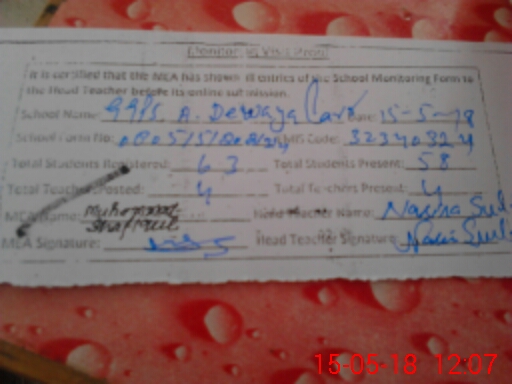 | Certified that this School was Inspected by the Undersigned MEA/DMO Today and the Information Stated Above is as Per Record. | |||||
