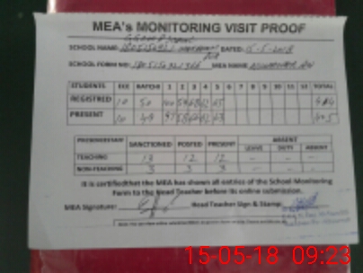 | Attendance Register | Head Teacher | MEA with School | Visit Proof |