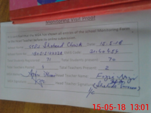 | EMIS Code: 31140454 | Name of School: GGPS CHOWK SHAHEED | |||