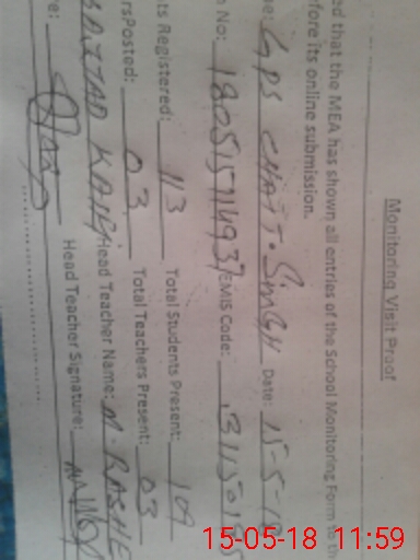 | EMIS Code: 31150195 | Name of School: GPS CHAIT SINGH | |||
