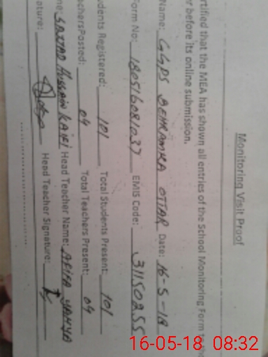 | Certified that this School was Inspected by the Undersigned MEA/DMO Today and the Information Stated Above is as Per Record. | |||||