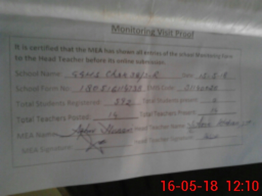| Certified that this School was Inspected by the Undersigned MEA/DMO Today and the Information Stated Above is as Per Record. | |||||
