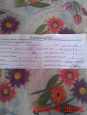 | Attendance Register | Head Teacher | MEA with School | Visit Proof |