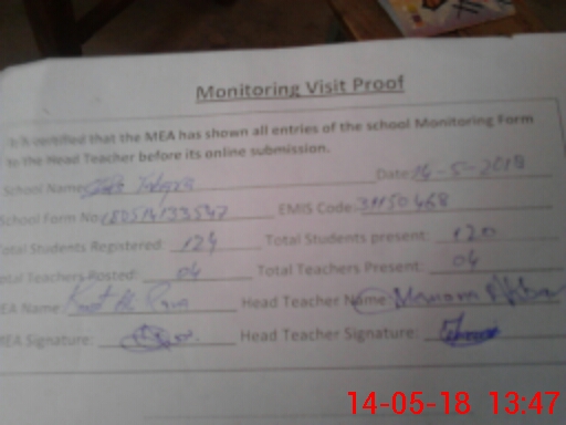 | Attendance Register | Head Teacher | MEA with School | Visit Proof |