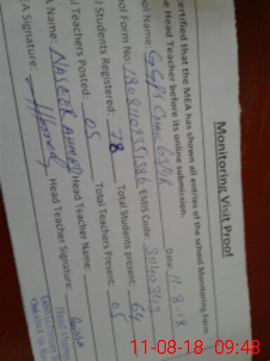 | Certified that this School was Inspected by the Undersigned MEA/DMO Today and the Information Stated Above is as Per Record. | |||||