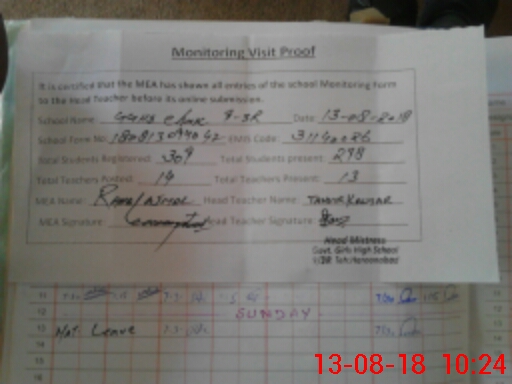 | Certified that this School was Inspected by the Undersigned MEA/DMO Today and the Information Stated Above is as Per Record. | |||||