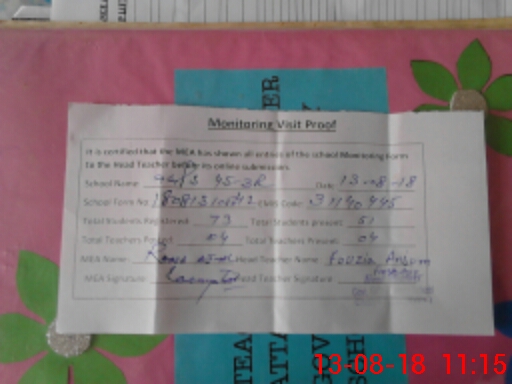 | Certified that this School was Inspected by the Undersigned MEA/DMO Today and the Information Stated Above is as Per Record. | |||||