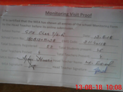| EMIS Code: 31140118 | Name of School: GPS CHAK NO 9/3-R | |||