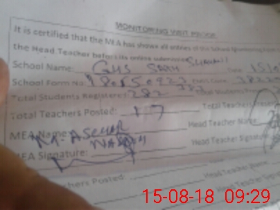 | Certified that this School was Inspected by the Undersigned MEA/DMO Today and the Information Stated Above is as Per Record. | |||||