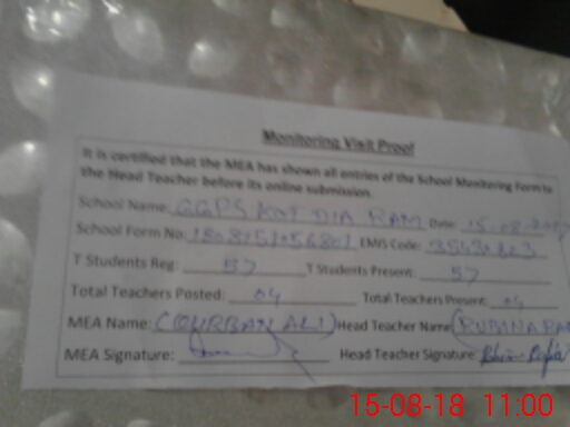 | EMIS Code: 35430823 | Name of School: GGPS KOT DIA RAM | |||