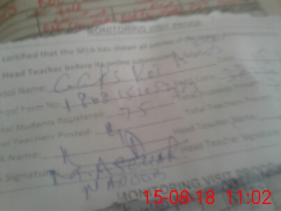 | Attendance Register | Head Teacher | MEA with School | Visit Proof |