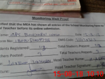 | Certified that this School was Inspected by the Undersigned MEA/DMO Today and the Information Stated Above is as Per Record. | |||||