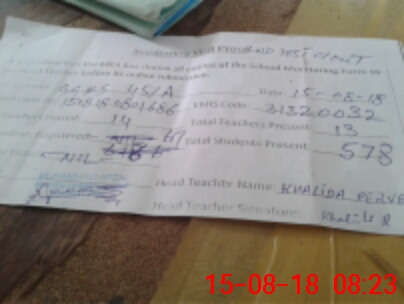 | Attendance Register | Head Teacher | MEA with School | Visit Proof |