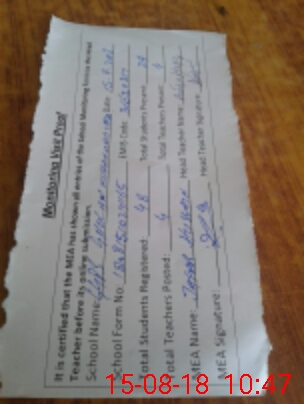 | Attendance Register | Head Teacher | MEA with School | Visit Proof |