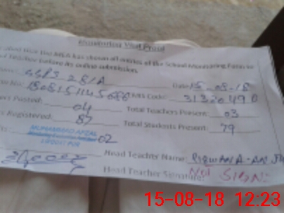 | Attendance Register | Head Teacher | MEA with School | Visit Proof |
