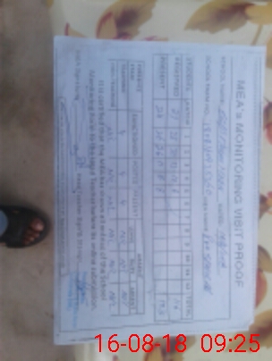 | Monitoring Date: 16-08-2018 | Start Time: 16-08-2018 08:38 AM | End Time: 16-08-2018 09:28 AM | Name of MEA: Ra**** Sh**** Al**** ex**** | |