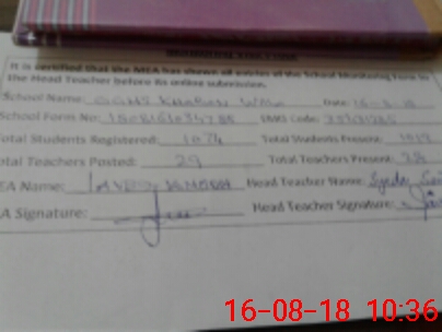 | Attendance Register | Head Teacher | MEA with School | Visit Proof |