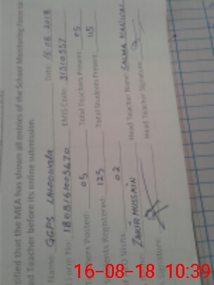 | Certified that this School was Inspected by the Undersigned MEA/DMO Today and the Information Stated Above is as Per Record. | |||||