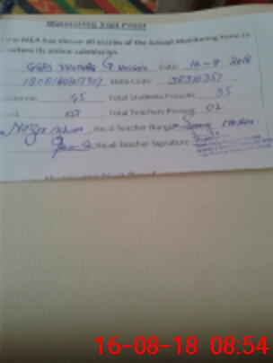 | Certified that this School was Inspected by the Undersigned MEA/DMO Today and the Information Stated Above is as Per Record. | |||||