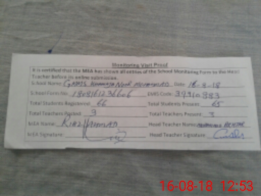 | Attendance Register | Head Teacher | MEA with School | Visit Proof |
