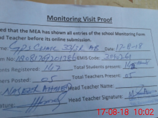 | EMIS Code: 31140261 | Name of School: GPS CHAK NO.33/3-R AB | |||