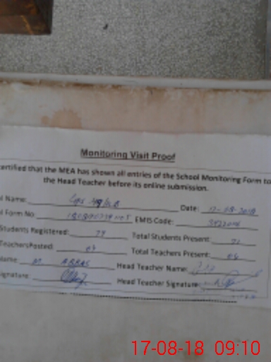 | Certified that this School was Inspected by the Undersigned MEA/DMO Today and the Information Stated Above is as Per Record. | |||||