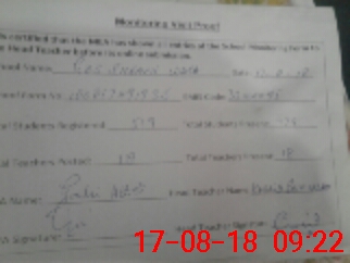 | Attendance Register | Head Teacher | MEA with School | Visit Proof |