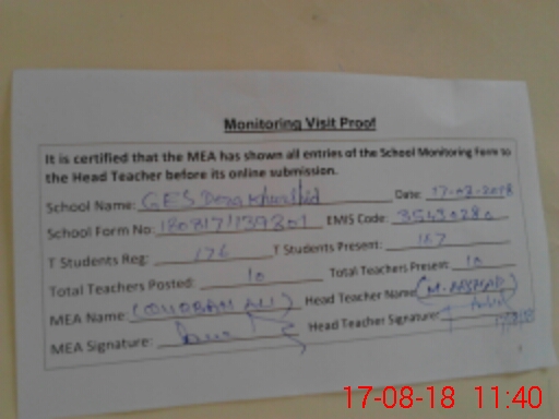 | EMIS Code: 35430280 | Name of School: GES DERA KHURSHEED HIRAN MINAR | |||