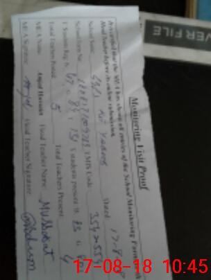 | Certified that this School was Inspected by the Undersigned MEA/DMO Today and the Information Stated Above is as Per Record. | |||||
