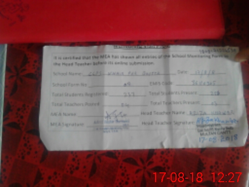 | Attendance Register | Head Teacher | MEA with School | Visit Proof |
