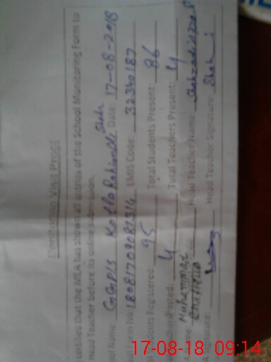 | Attendance Register | Head Teacher | MEA with School | Visit Proof |