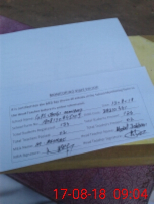| Attendance Register | Head Teacher | MEA with School | Visit Proof |