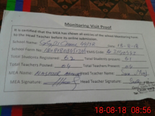 | Certified that this School was Inspected by the Undersigned MEA/DMO Today and the Information Stated Above is as Per Record. | |||||
