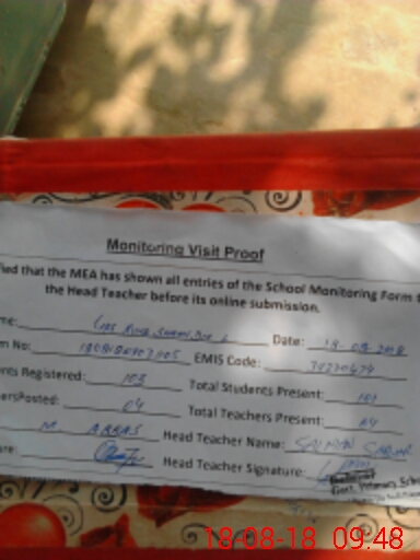 | Attendance Register | Head Teacher | MEA with School | Visit Proof |